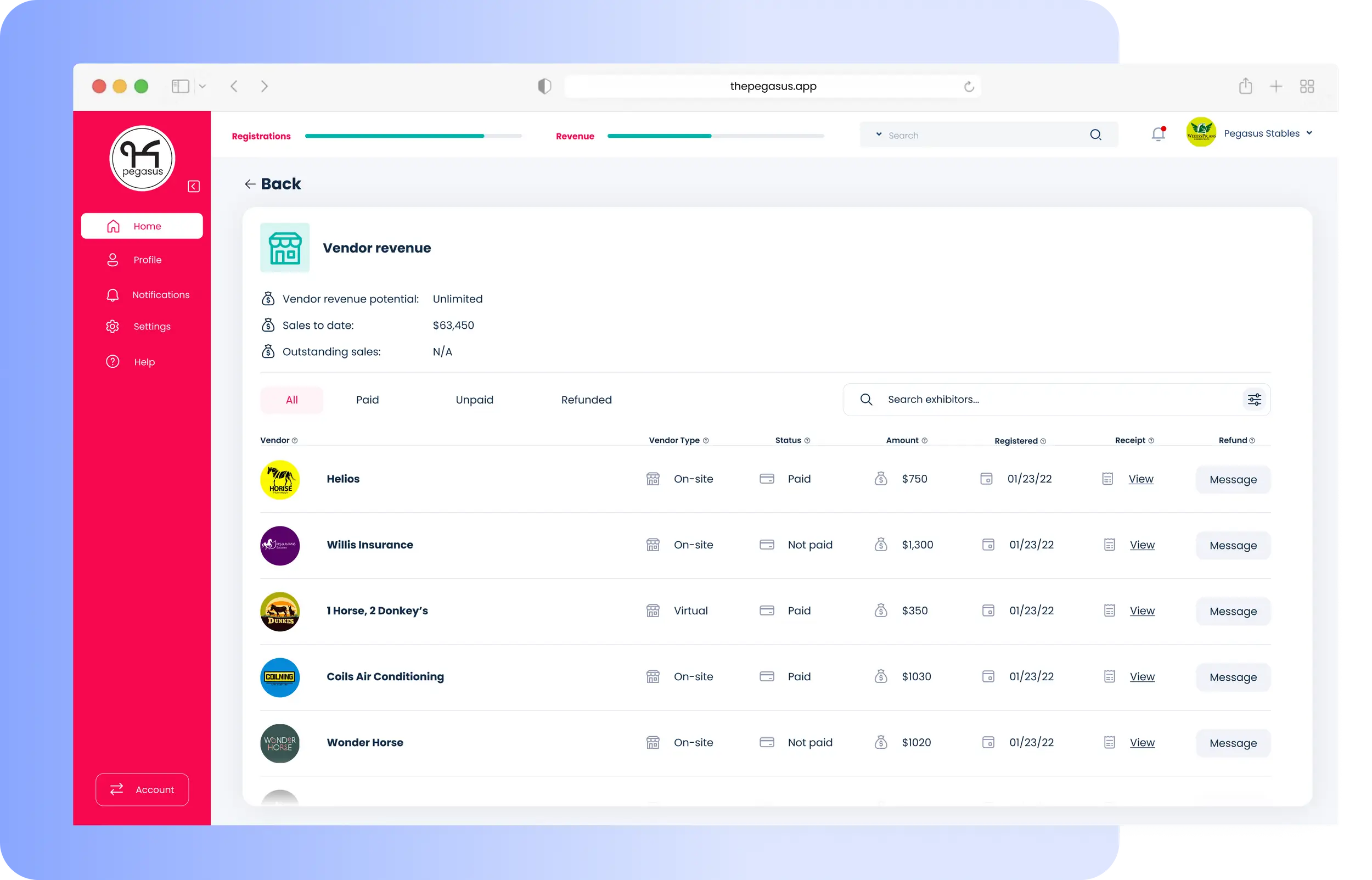 Manage vendor and sponsor logistics and communications with a simple dashboard.