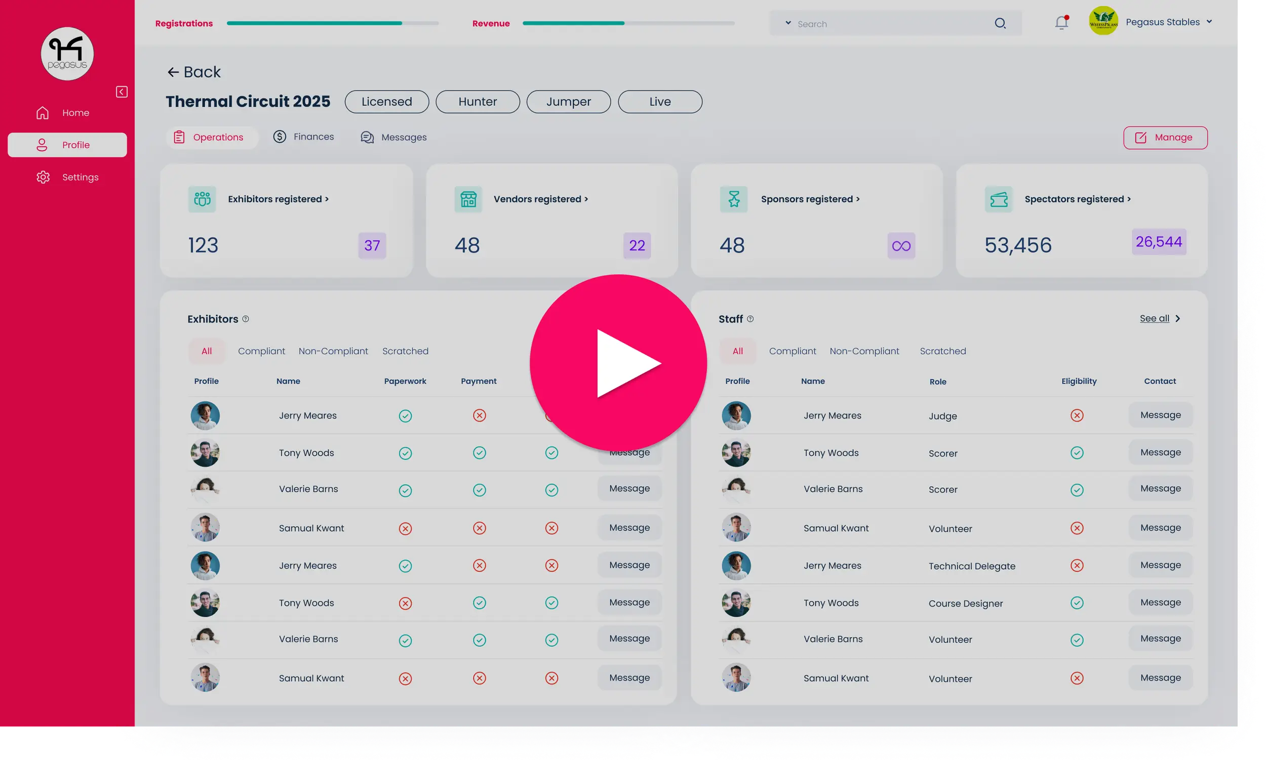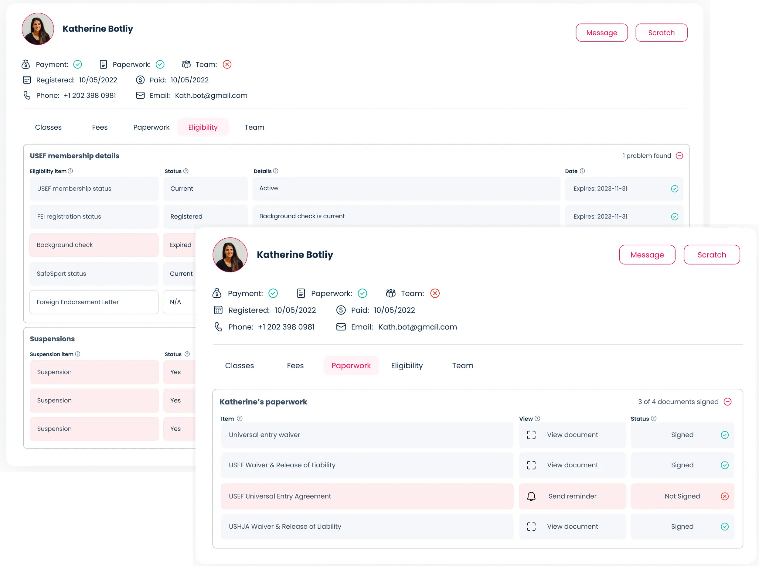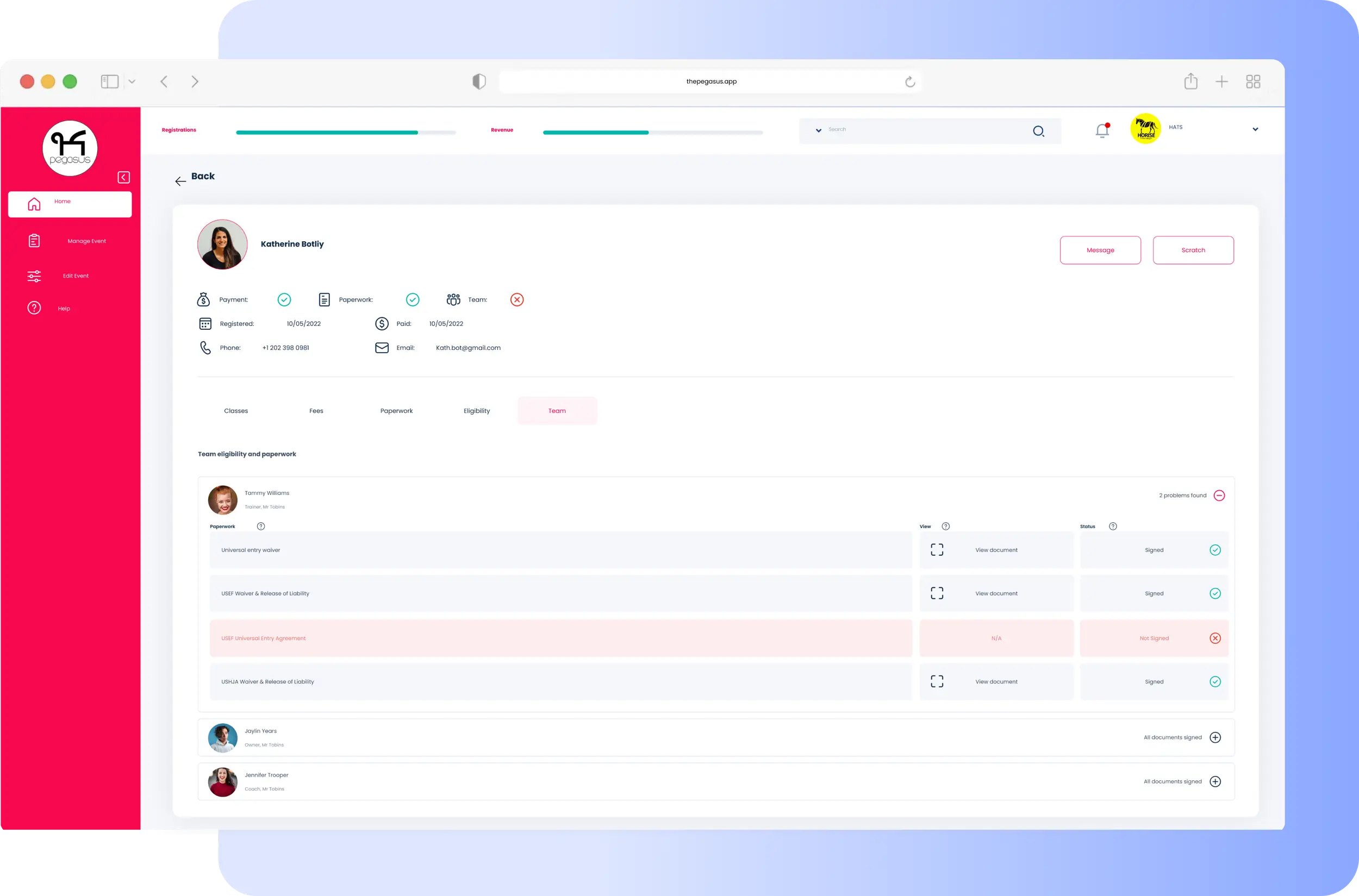 Handle registrations and event administration - such as paperwork, payment, and eligibility status.